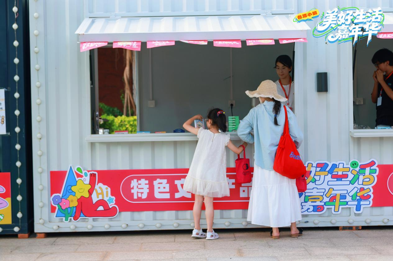 邻里情深・生活服务区主打“便民暖心”。工作人员耐心解答游客疑问;免费的生活服务咨询台前,不少市民游客咨询旅游攻略等问题,志愿者一一细致回应;台湾商品展示区域更是人气十足,洗漱用品、零食、调味品等质优价廉,方便游客一站式采购。