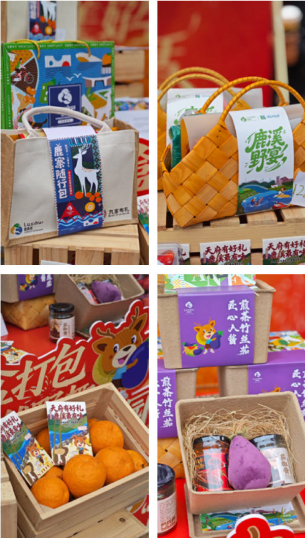 联名款“鹿溪随行包”带来跨界惊喜,与九寨沟特色品牌“九寨有礼”联手,将天府新区农产风味与九寨文旅元素融合,以便捷的设计满足游客出行需求,让两地美食文化在市集碰撞出别样火花。